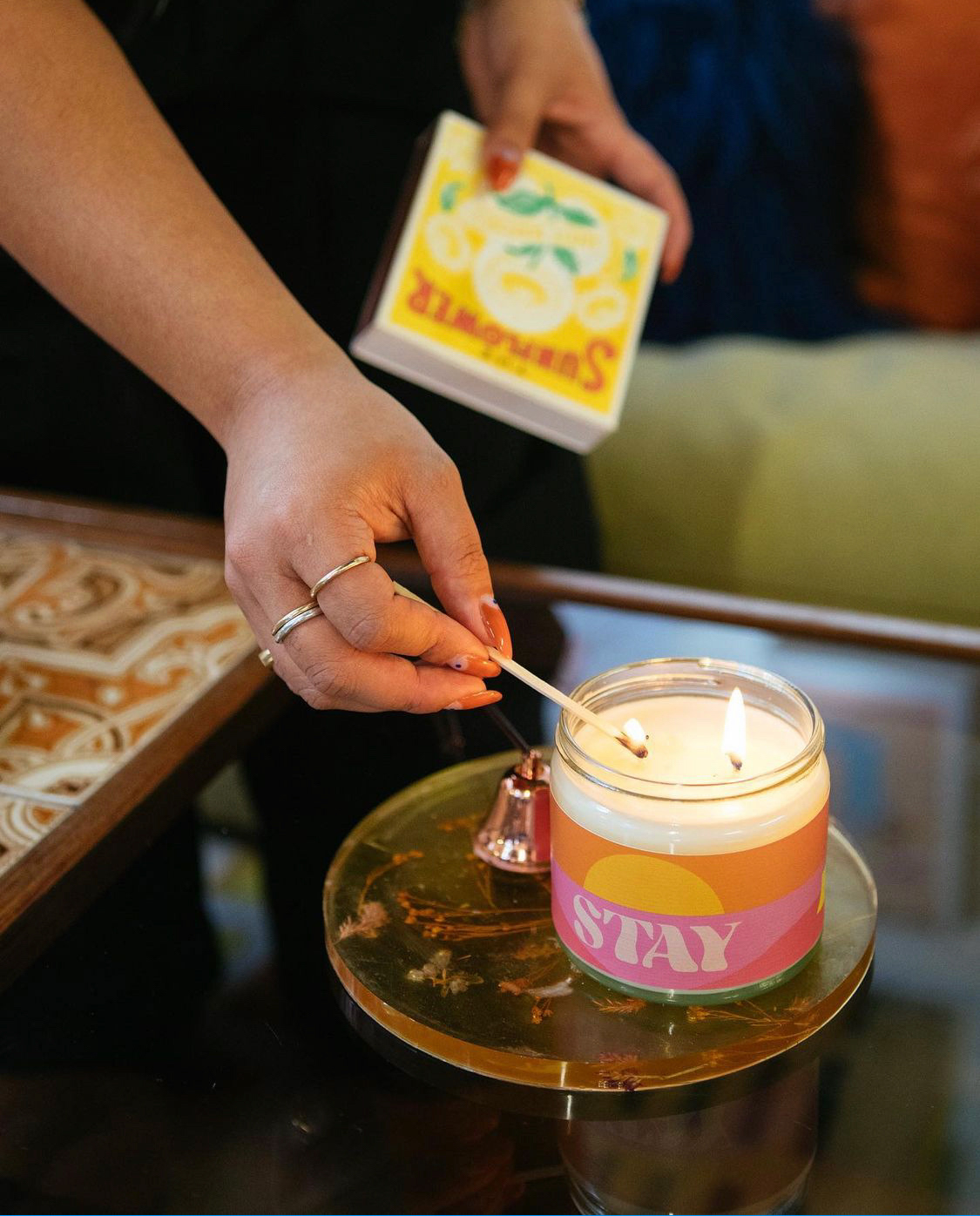'STAY' candle created for a collaboration between The Artists Pad and Golden Hour. A luxurious, yet relaxing and playful scent of bergamot, ylang ylang and patchouli'